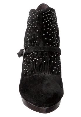 Glam Rock: Il nero stivali in camoscio caviglia da Biviel. Il tappo semplice forma un grande contrasto alla radice dal design elaborato. Con borchie fine e finito con una stretta cintura, gli stivali sono femminili. Il paragrafo piccolo altopiano rende le scarpe comode e nonostante il tacco alto. Il materiale interno della pelle aumenta il comfort ancora maggiore. Elegante e raffinato allo stesso tempo: gli stivali neri borchiati da casa Biviel.